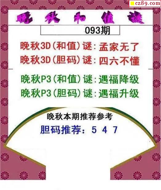 首页 > 福彩3D图谜 > 晚秋和值谜2026093期3d图谜
