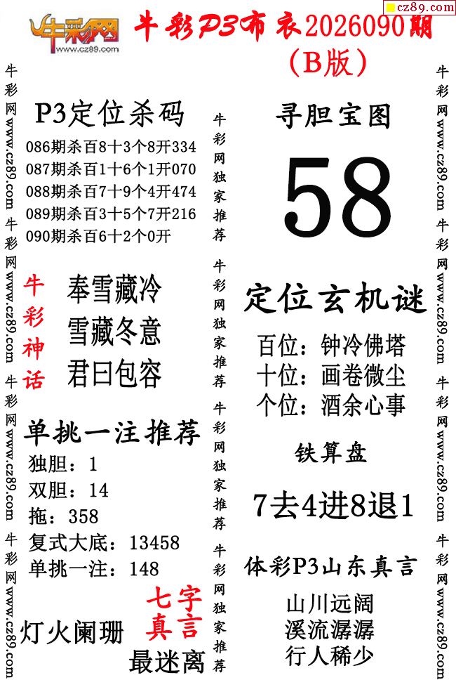 > 牛彩P3布衣26年090期AB版图谜(精华版)