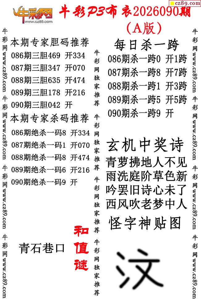 牛彩P3布衣26年090期AB版图谜(精华版)