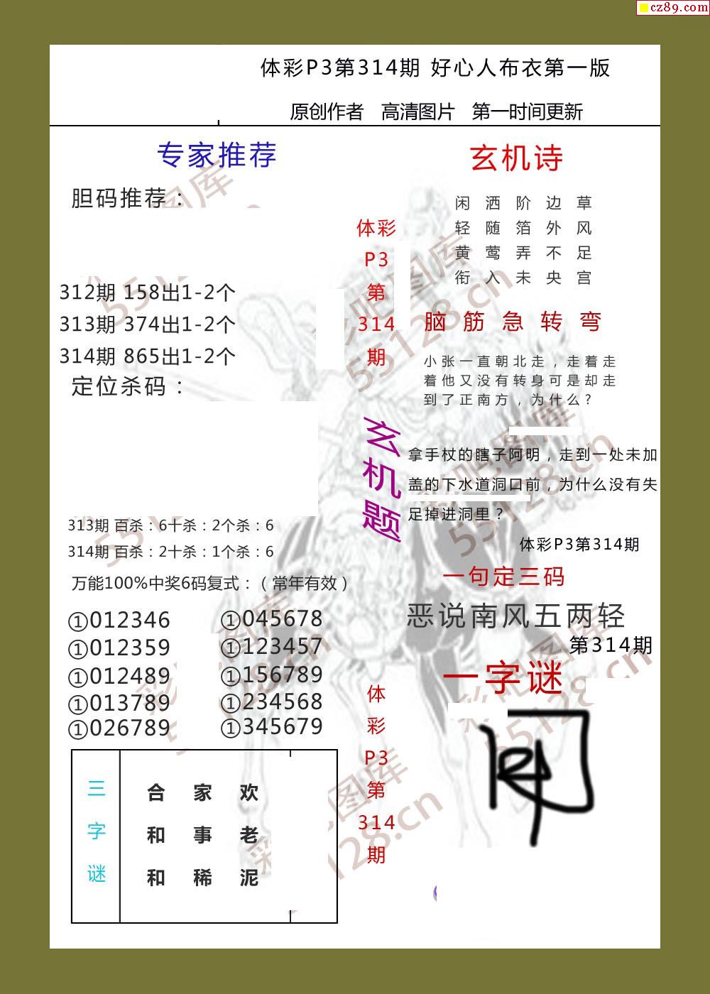 首页 > 排列3图谜 > 好心人布衣AB版314期体彩p3图谜