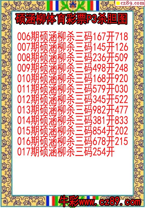 首页 > 排列3图谜 > 26年017期硕涵柳体育彩票P3杀胆图